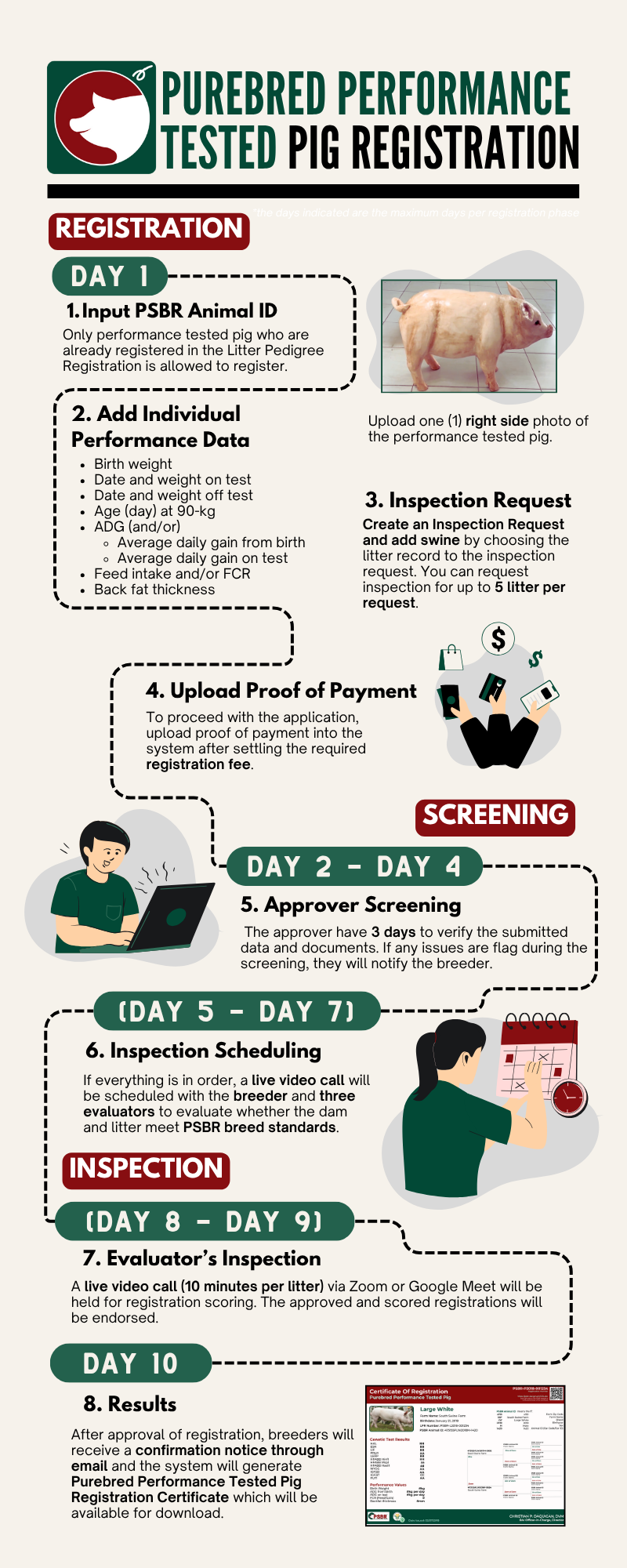 Register you performance tested pig to obtain a Purebred Pig Certificate, register performance-tested animals up to 5 months old that already have pedigree registration through a process that takes 10 days to complete.